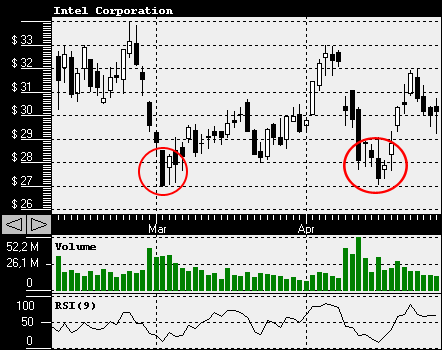 shares traded at a specific time frame, for example daily as shown below. Usually volume does not provide a